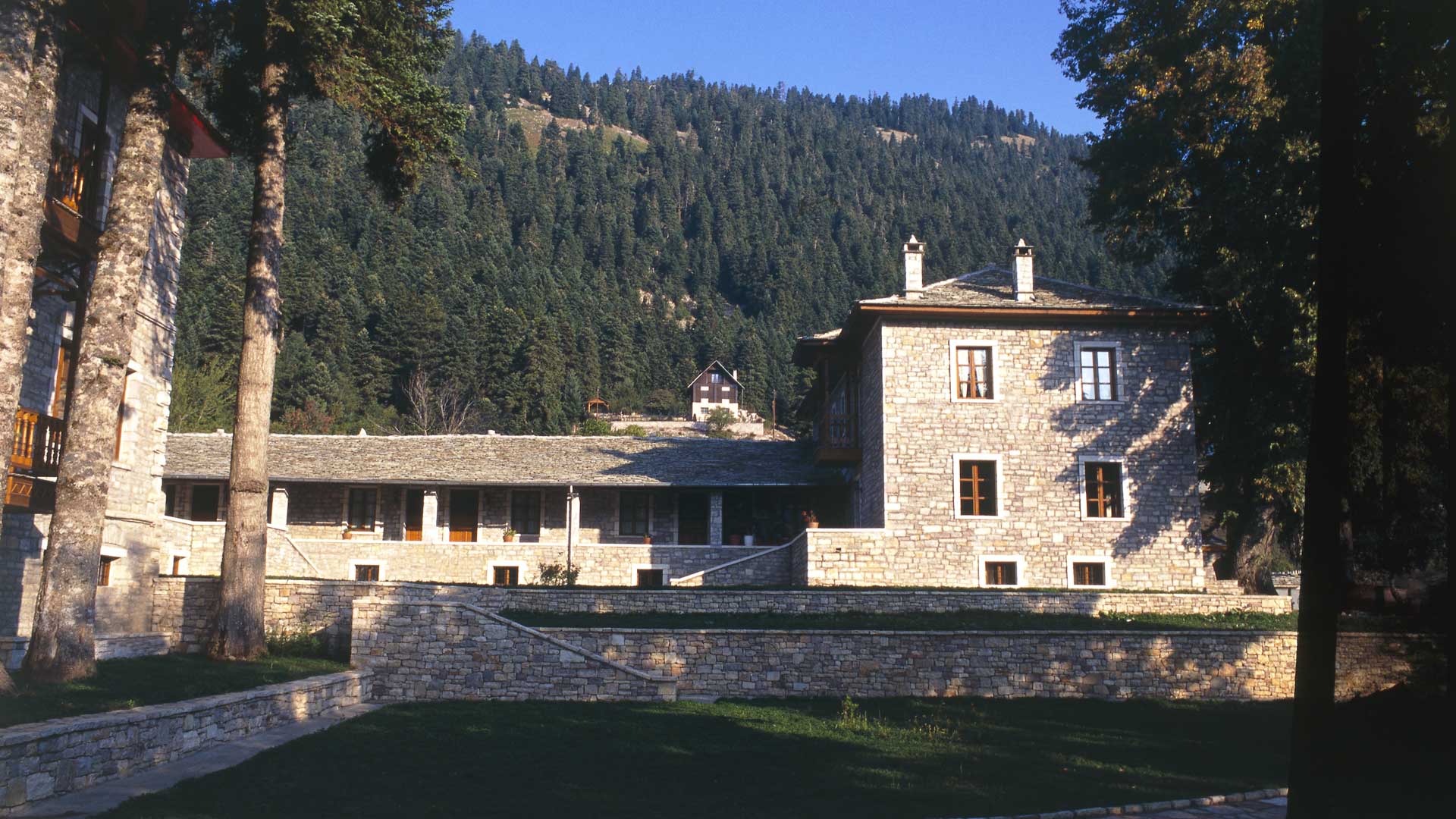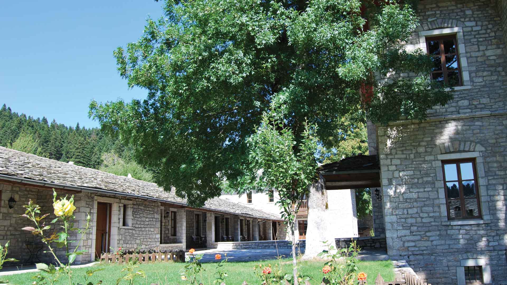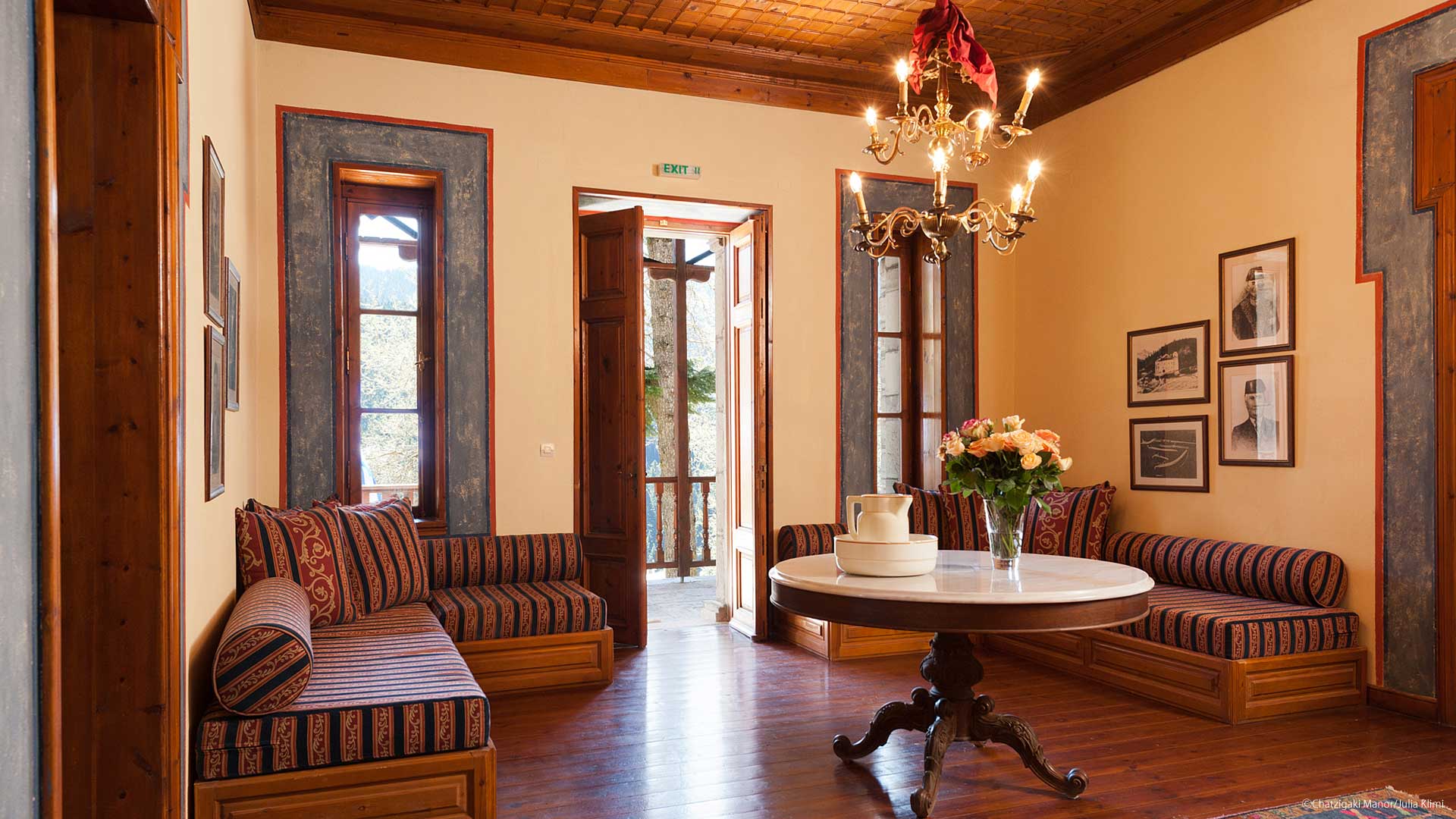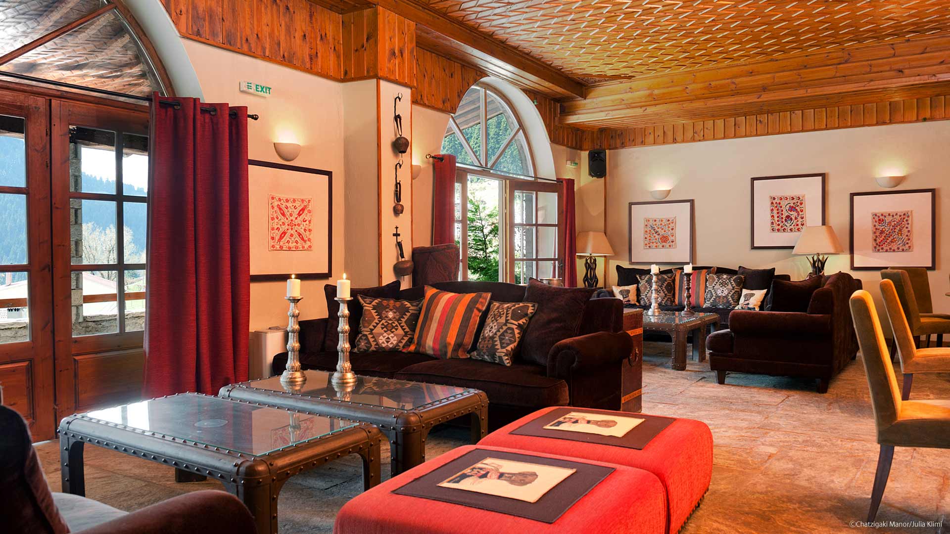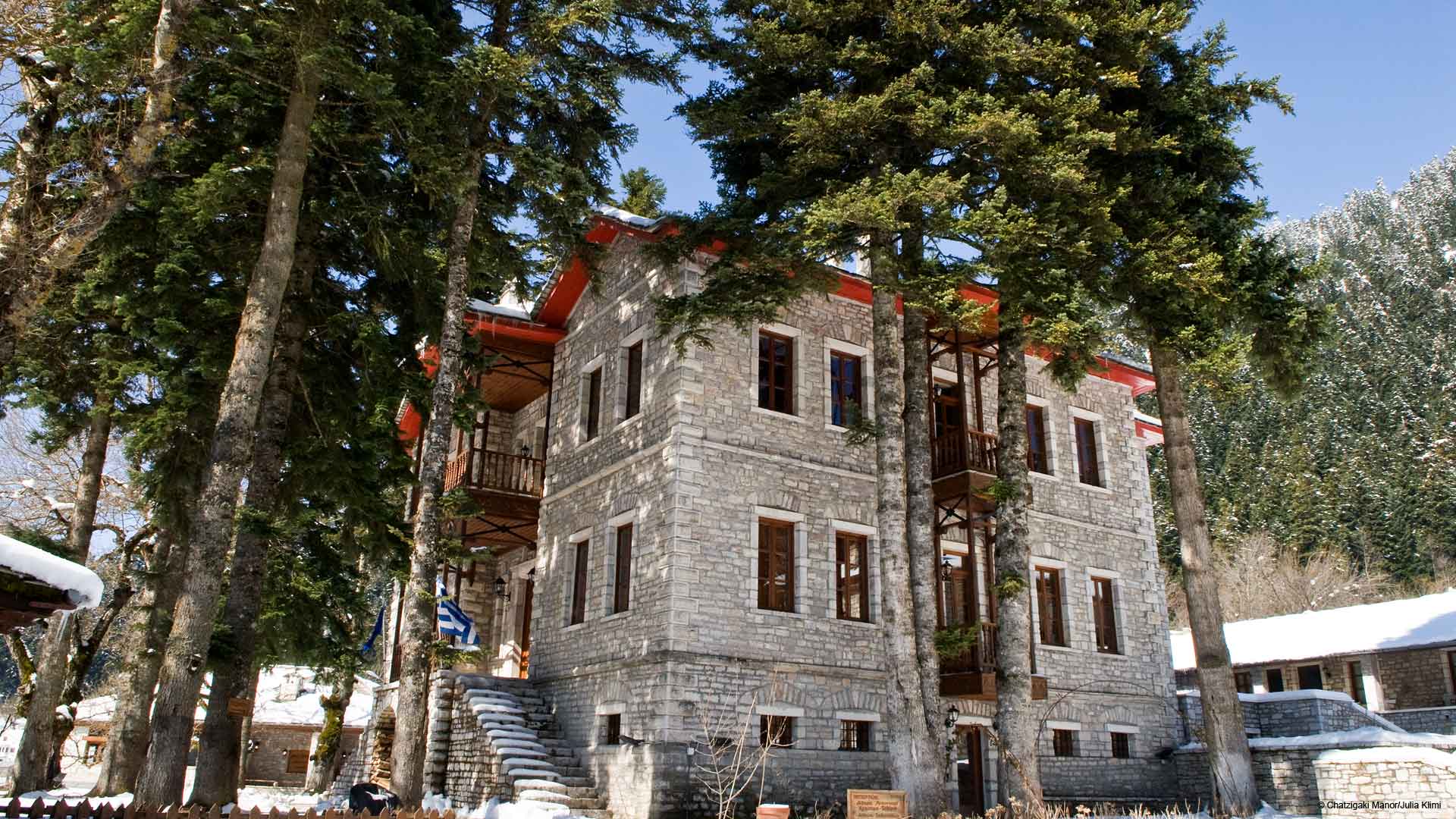 Discover the Chatzigaki Manor in Pertouli, its venues, services and history. Set amidst lush greenery, under ancient fir trees, this luxurious, historic hotel consists of four buildings and a stone chapel, dedicated to Agia Paraskevi, on a beautiful estate, at an altitude of 1,200 meters in the mountainous area of Thessalian Pindos.