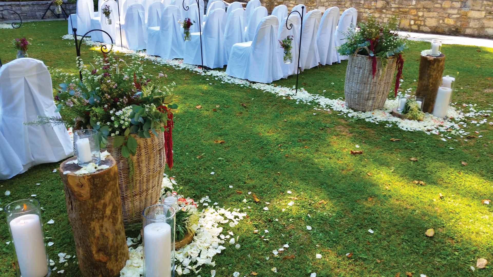 Civil marriage ceremony and welcome drink. This outdoor area cannot host receptions for practical reasons.