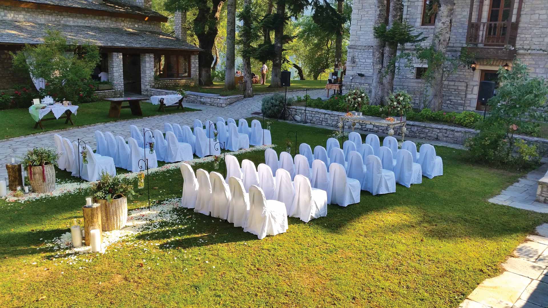 Chatzigaki Manor is the ideal wedding estate, with its own church, excellent views and affordable prices. It has enchanting gardens and spacious outdoor areas, lovely verandas around the pool and luxurious interiors of high aesthetics in a captivating, historic setting with splendid views, surrounded by peaceful forests. Your wedding in our Mansion will be one of the most beautiful and important days of your life.