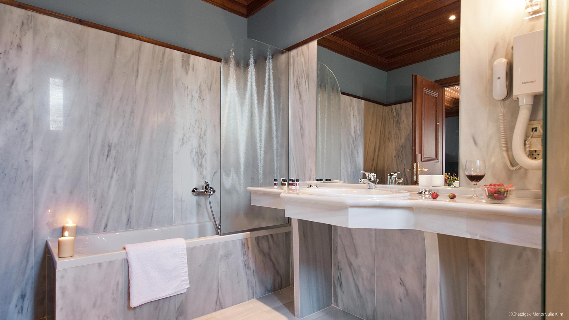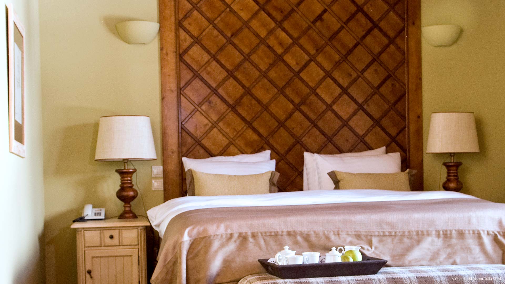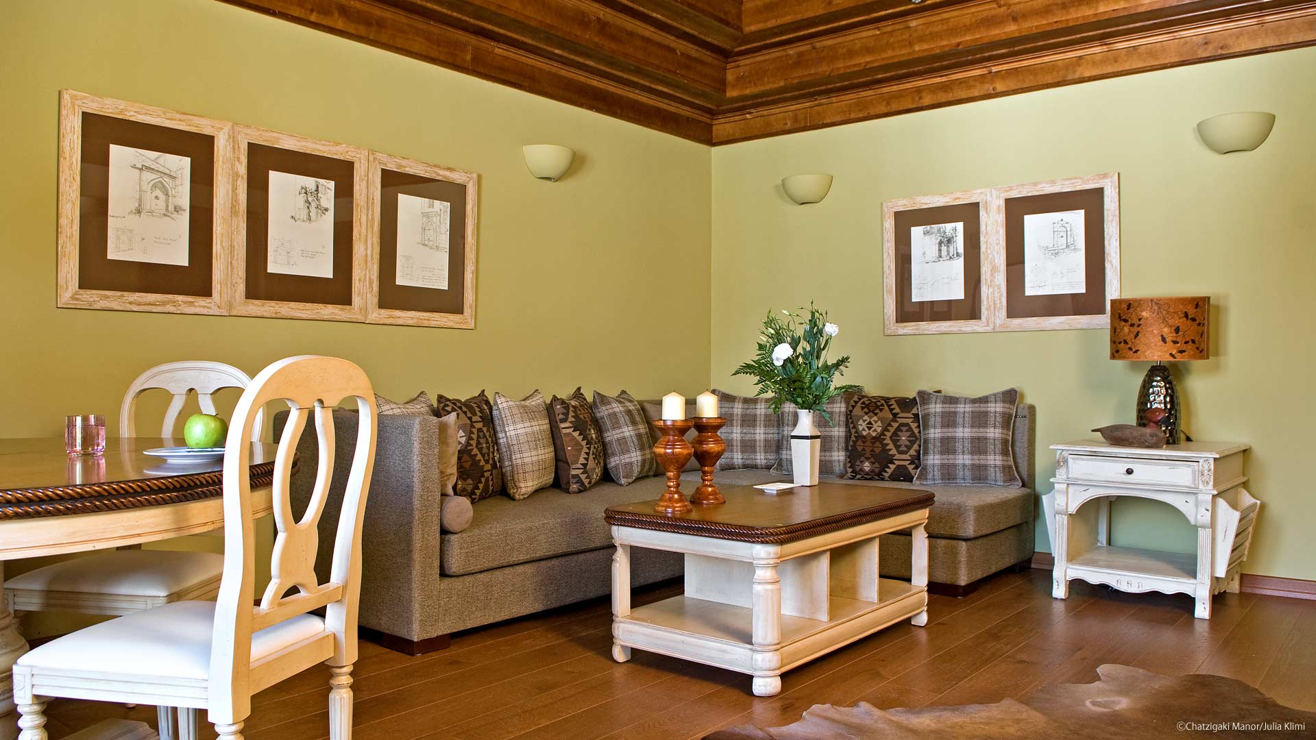 Offering refined luxury and supreme comfort, Superior Suites are your 80-square-meter private spaces at Pertouli. Their unique panoramic view of the forest and the village may be what you need to distance yourself from a stressful routine. The Super King size, 4-Layer, Coco-mat beds will further help you to unwind. With a classic and opulent decorative style, they offer a bedroom and living room, and 2 en-suite bathrooms. Located in a new building on the Estate, Superior Suites can accommodate 2 adults and up to 2 children.